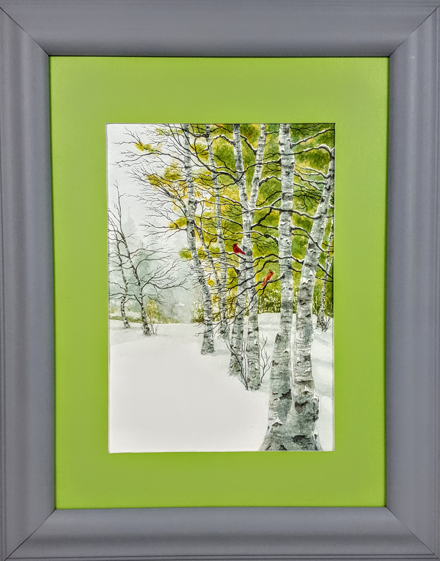 15.1/2″ x 19.1/2″ flat gray frame w/green mat, glass