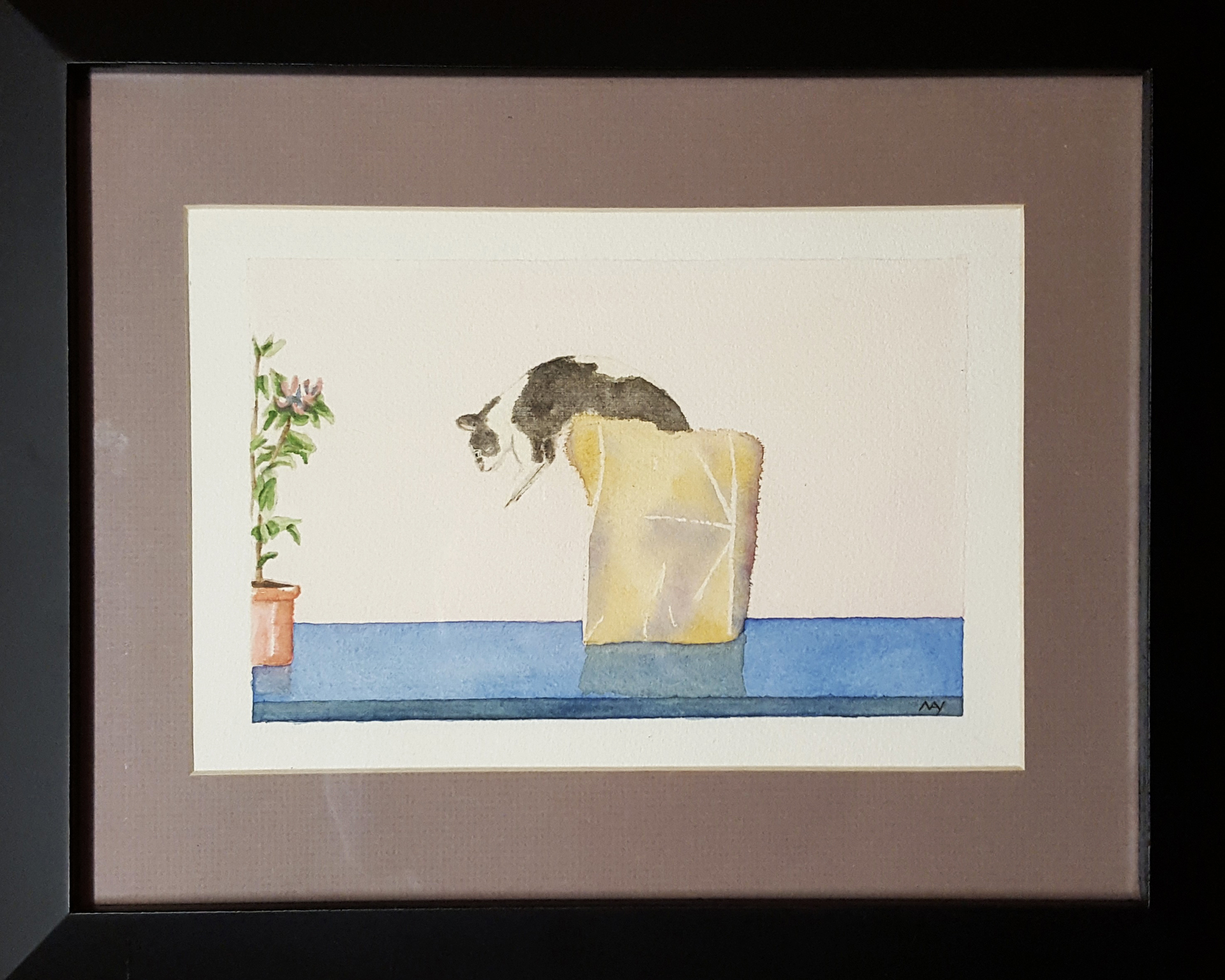 16″x12.5″ watercolor black frame, mat, glass