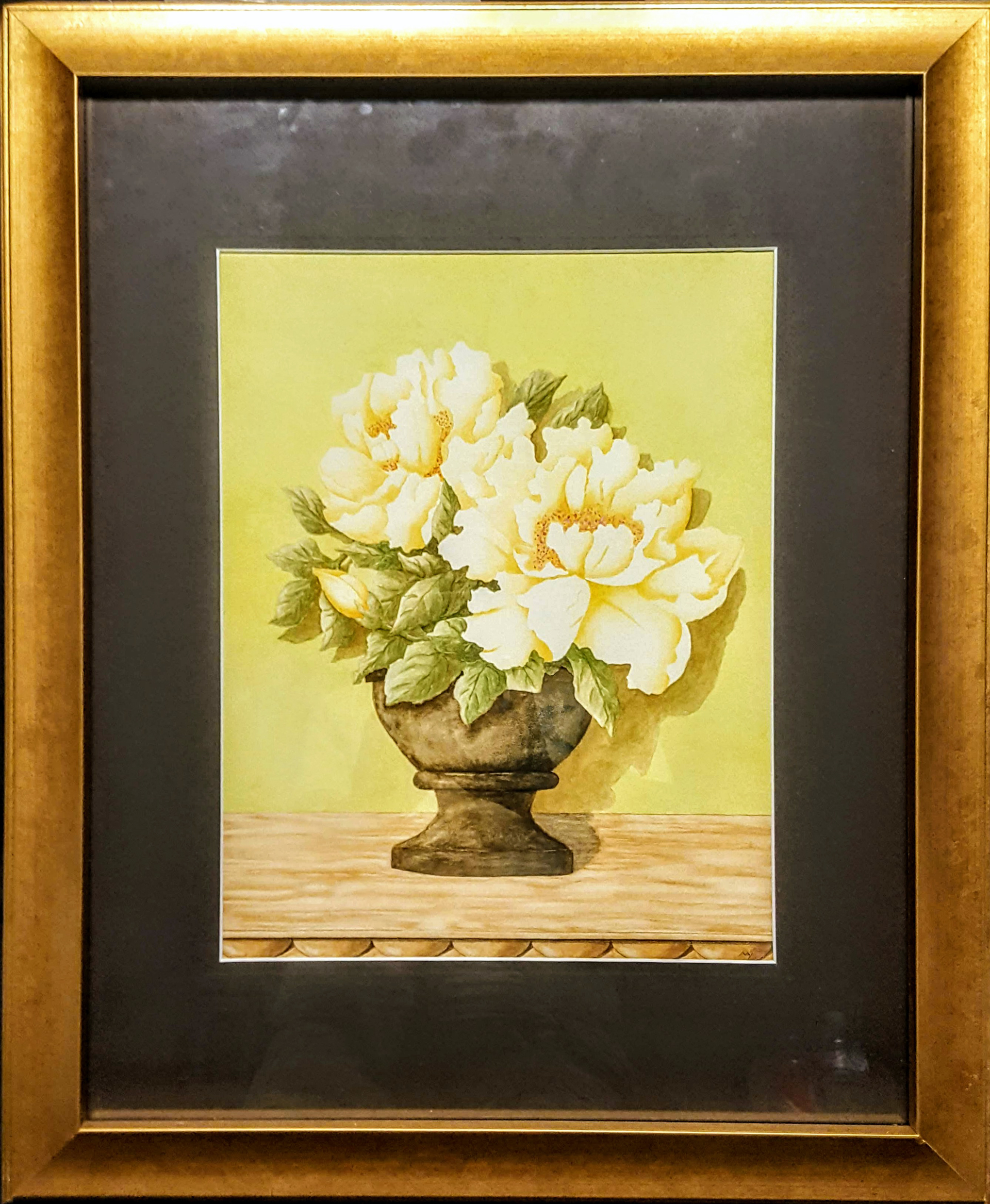 watercolor 18.5 x 22 mat glass gold frame