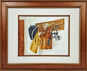 16.3/8″ x 13.1/4″ wood frame w/white & wood mat, glass