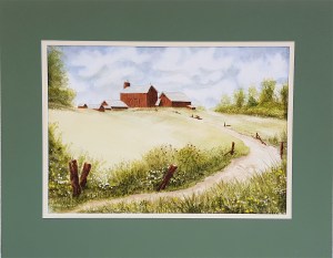 Path to Barn Watercolor 24″ x 18.5″ matted, 26.5″ x 21.25″ framed,glass, mat, wood frame Like Loading...